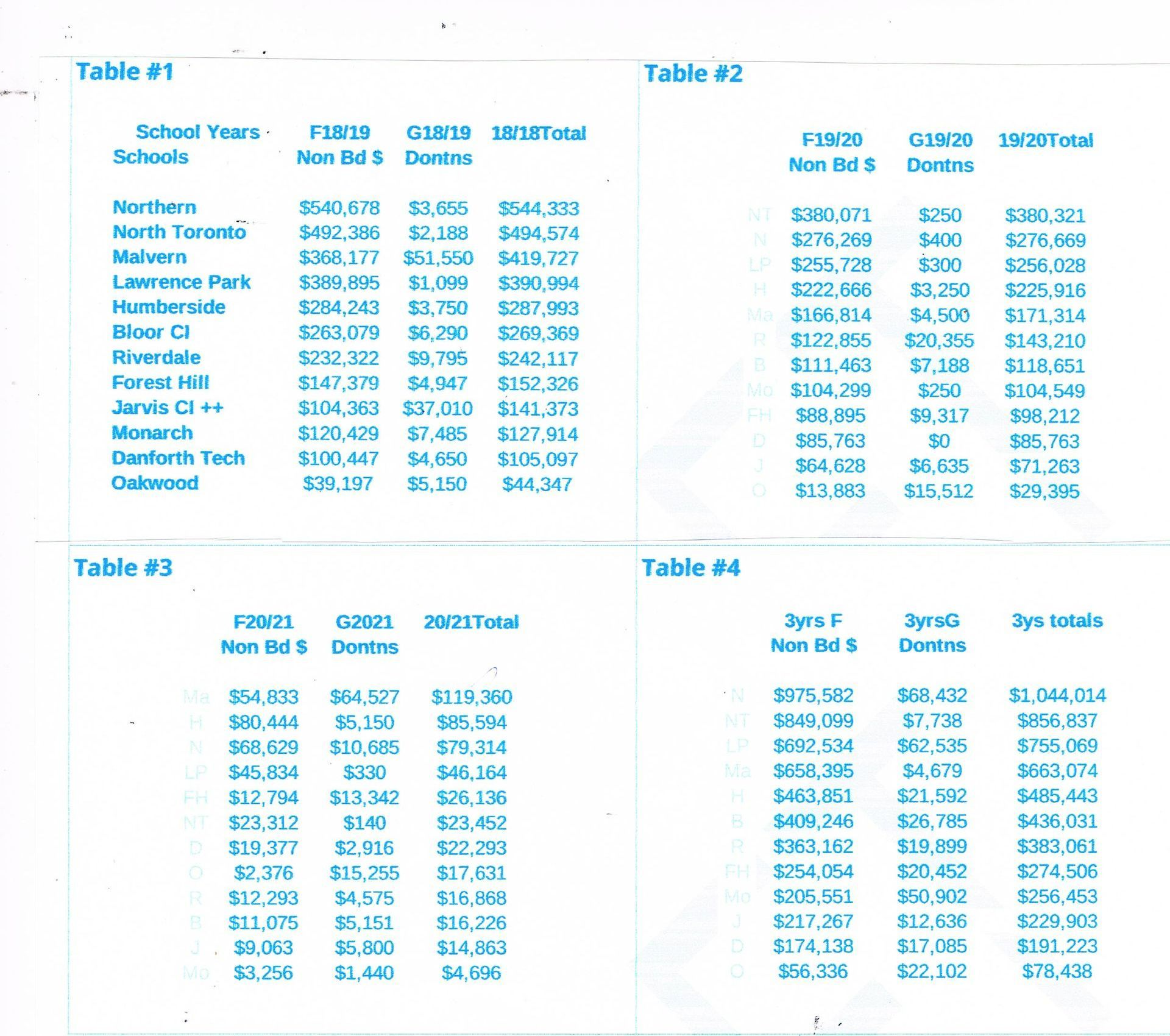 1. An “in-progress-needing-updating” paper on Fundraising/TDSB School Budgets Drafted by Sports4Jarvis is available . Attached, only to hint at the issues that exist for schools, particularly those in low income areas.
