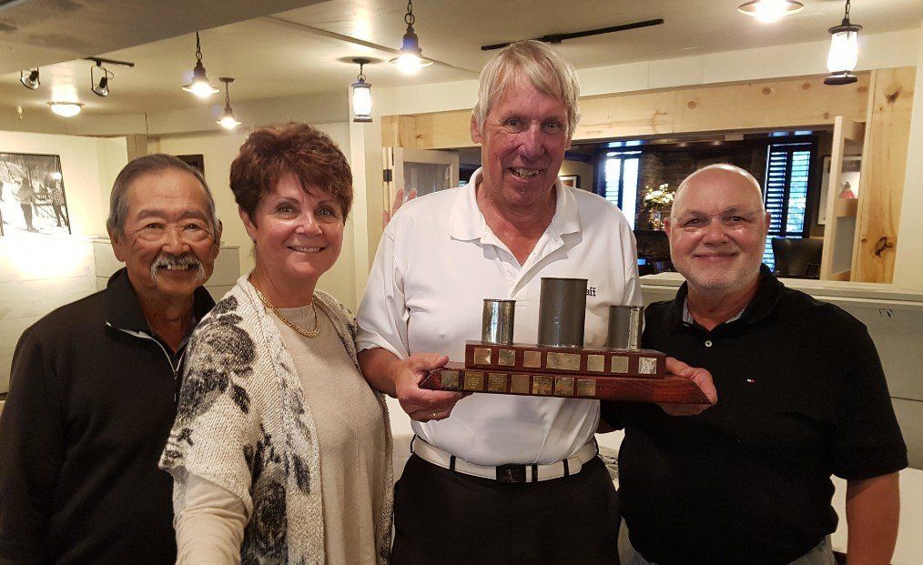 2018 CHAMPION GOLFERS...WALLY MURAKI, GRACE DASBERG, CHUCK WAKEFIELD & SHIM GOLDFARB WITH THE FAMOUS JCI INVITATIONAL TROPHY (aka The Ohtake Trophy)