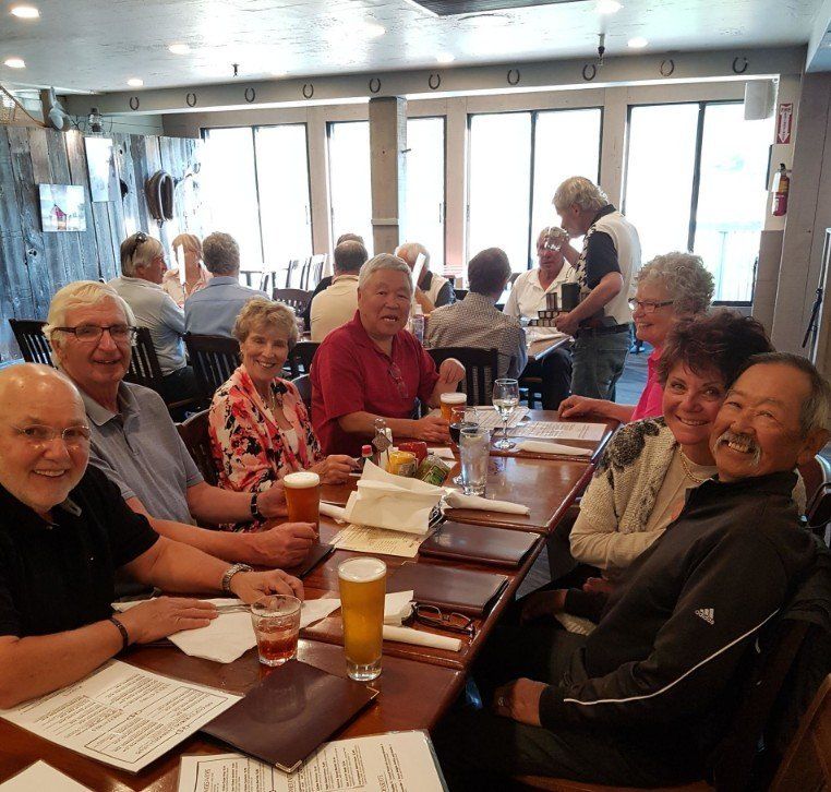 This year, 20 golfers vied for the title of Champion Golfers of The JCI World Title. The winning group was an interesting blend of grizzled veterans and a newcomer who flew in from New Zealnd for the event (and maybe some other family things too, but...). The champs are pictured below. From left to right, Bob Morgan (Sammy Davis Jr.? or Roger Federer?), Dave Barrett (presumed fan of the All-Blacks), Grace Dasberg (Best (Female) Golfer each and every year), Wally Muraki (Lucky consort of the lovely Grace and gymnast extraordinaire), Richard Orviss (veteran, Emcee and he of 240 yard drives (still)). The venerable JCI Invitaional Trophy (aka The Ken Ohtake Trophy) which dates to 1963, is being presented by part -time Emcee and world leading expert on all things retail, Michael Richard Pearce.