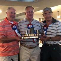 2018 CHAMPION GOLFERS...WALLY MURAKI, GRACE DASBERG, CHUCK WAKEFIELD & SHIM GOLDFARB WITH THE FAMOUS JCI INVITATIONAL TROPHY (aka The Ohtake Trophy)